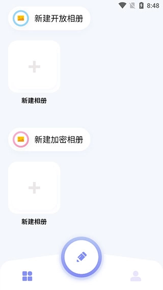 2、下滑可以查看并新建相册,开放相册或者加密相册。