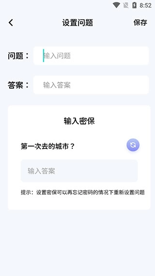 4、加密相册需要设置问题和查看相册的答案,还可以输入密保问题,密保可以在忘记加密相册的密码的情况下重新设置问题。