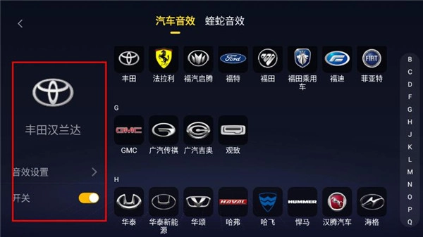 2进入音效相关的设置界面后,找到车型选择的选项,通过选定与自己车辆对应的型号,就能让音效效果适配爱车的特性。