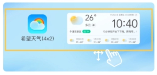 4、长按并上下轻轻拖动, 可调节小插件大小
