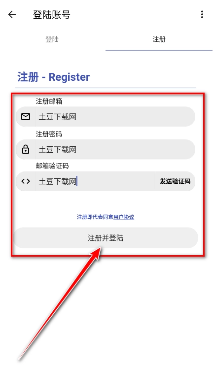 4请按提示依次填写用于注册的邮箱地址、设置登录密码、输入邮箱收到的验证码,完成这些信息录入后,点击对应的注册并登录按钮即可完成操作。