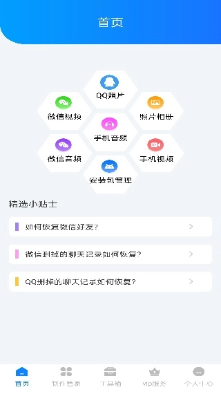 1. 打开具备微信恢复、QQ恢复、短信恢复等功能选项的应用。