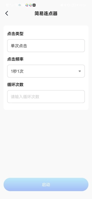 2、点击简易点击器后,可对点击类型、点击频率、循环次数进行选择设置,随后执行启动操作;