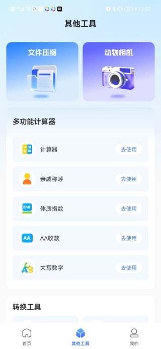 4、其他工具页面提供多功能计算器、文件压缩、动物相机和转换工具等服务。