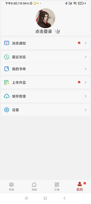 6、在“我的”页面里,用户能够对个人账户信息进行管理,还可以查看漫画与小说的缓存状态,以及浏览历史记录。