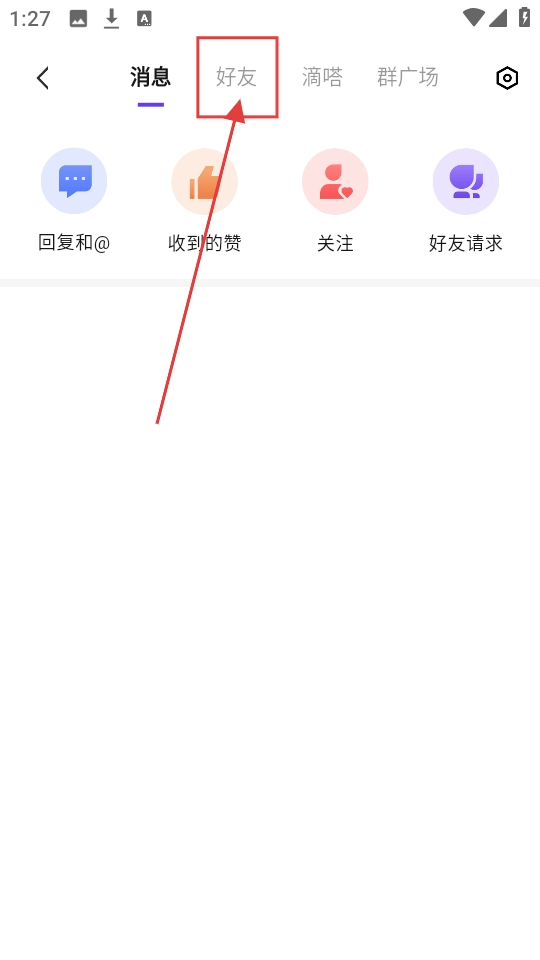 2、进入消息页面后,找到【好友】选项并点击,即可进入好友相关页面查看好友情况。