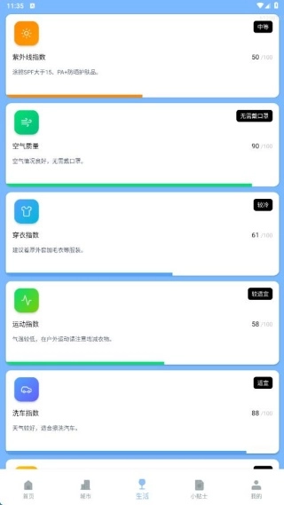 3、在生活页面,为我们展示了紫外线等其他天气参数。