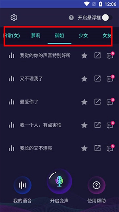 3进入软件主界面后,你会发现系统提供了多种风格的语音包可供选择,包括成熟御姐风、可爱少女风、温柔女友风等;同时,你也能利用自定义功能,用自己的声音录制并制作专属语音包。