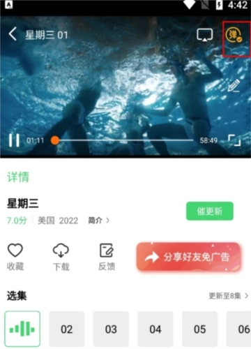 4、点击视频界面,就能看到弹幕开关,我们可以通过它开启或关闭弹幕。