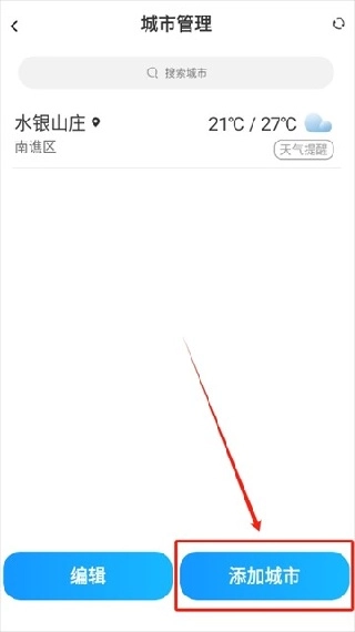 2. 在弹出的菜单中选择“添加城市”,准备输入你想要关注的地方。