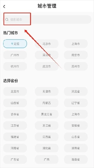 3. 在搜索框输入城市名称,输入完毕后点击确定,该城市的天气便会添加到列表当中。