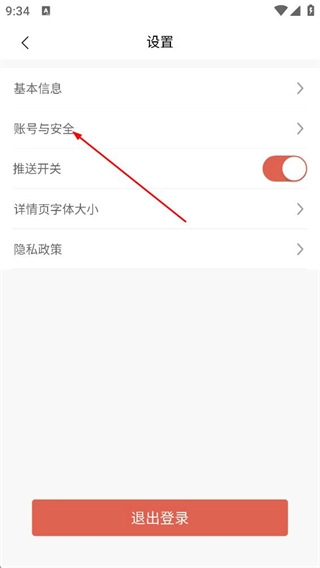 3、在设置页面,点击账号与安全,进入账号与安全页面。