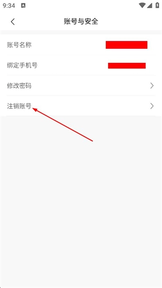 4、在账号与安全页面,点击注销账号,进入注销原因选择页面。