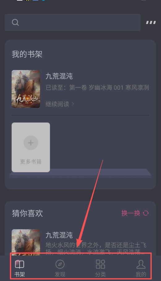 1、使用这个软件很简单,底部四个标签就是核心,找书去“发现”和“分类”,管理你的书和设置则去“我的”页面。