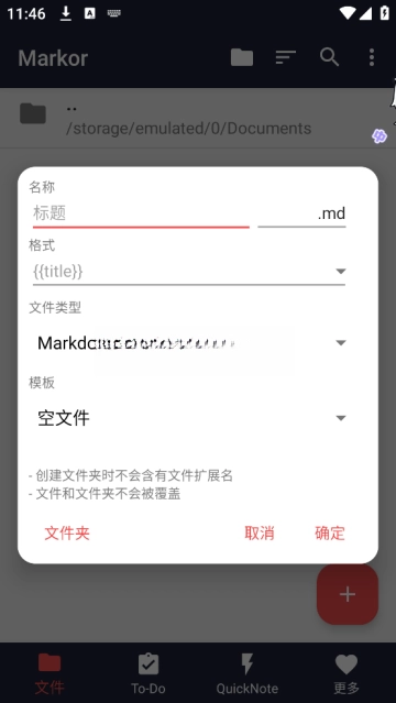 笔记本是程序启动时Markor在文件浏览器中加载的文件夹。它是你的文件的主文件夹。