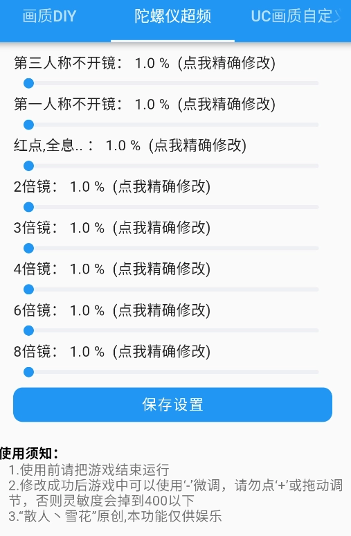 3、支持用户在这里随意修改参数设置,对于喜欢玩和平精英类射击游戏的发成有帮助;