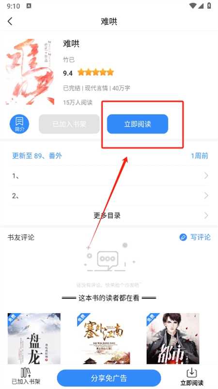 2、打开软件进入首页,选择一本小说进入作品简介页面