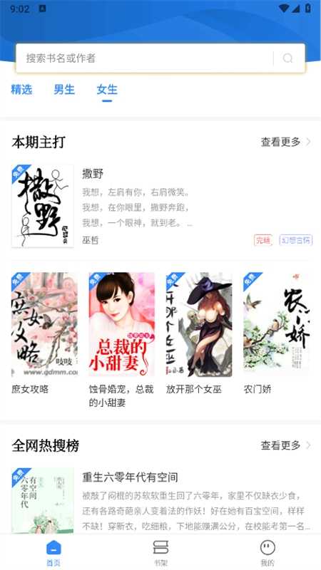 3、【排行榜单】男生榜、女生榜、完结帮、热搜榜、推荐榜、精选榜。