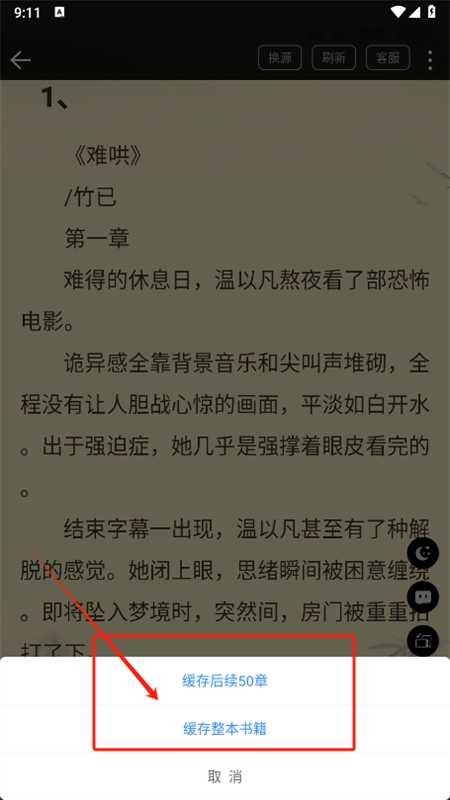 5、最后根据需求选择章节缓存或者整本缓存方式