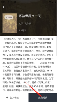 4、这里你就会发现,免费阅读看,就能直接看,还能将它来加入书架方便自己后续看!
