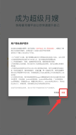 1、在用户隐私保护提示界面,点击同意选项继续后续操作。