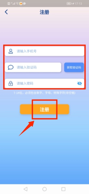 2、新用户需输入手机号及密码完成注册流程。