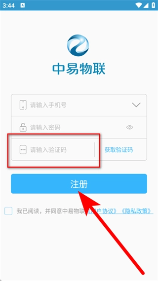 4、输入验证码,勾选协议后,点击注册,完成注册。