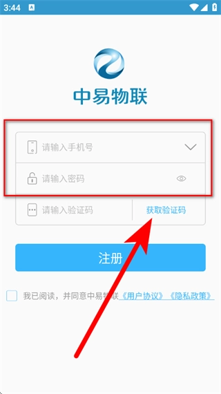 3在账号注册界面,填写手机号码并设置好登录密码后,点击对应的按钮来获取验证短信。