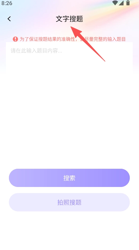 1、打开学法减分,免费进入文字搜题界面,输入题目内容后点击搜索按钮。