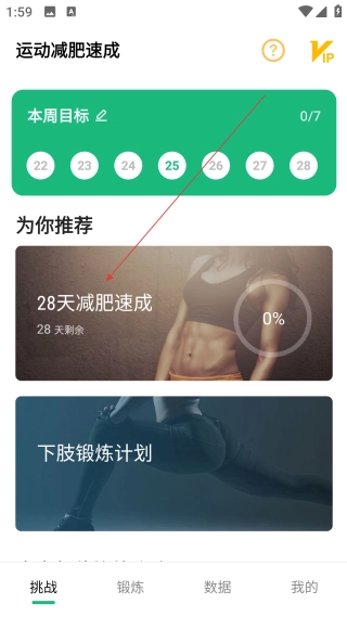 1、进入运动页面后,点击【28天减肥速成】计划,即可进入该计划的详情页面。