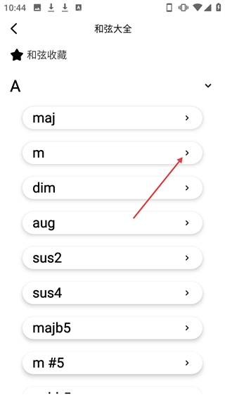 2、进入【和弦大全】页面后,在【A】分类下选择【m】选项。