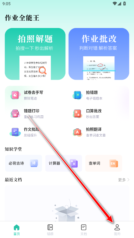 1首先,请在当前网站中找到并打开作业全能王应用,接着点击界面右下角的“我的”功能选项。