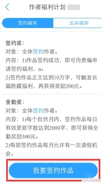 在【作者福利计划】中点击【我要签约作品】