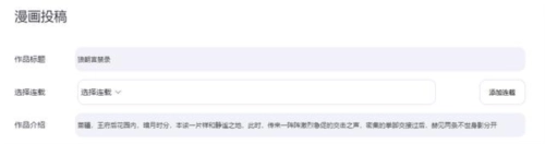 先是填写作品名称和作品介绍,如果是单幅条漫或四格,没有连载性,故事连续性,只是即兴创作的单一属性漫画,上传时会默认选择无连载。(非此类作品情况在后续介绍~)