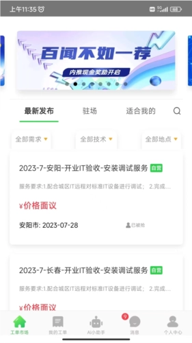我们会提供涵盖不同类型、地点与时间段的项目服务需求,工程师能够依据自身的实际情况来挑选合适的工单。