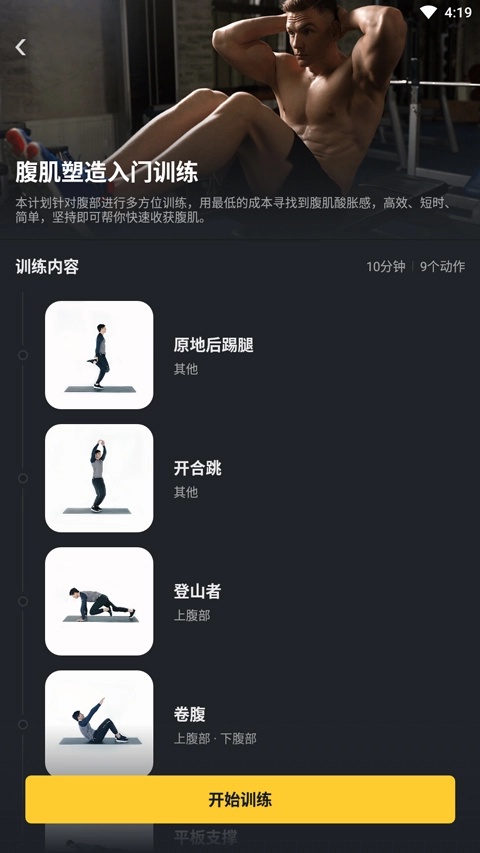 3、点击“训练”栏目,里面涵盖多种针对腹部的训练模块;