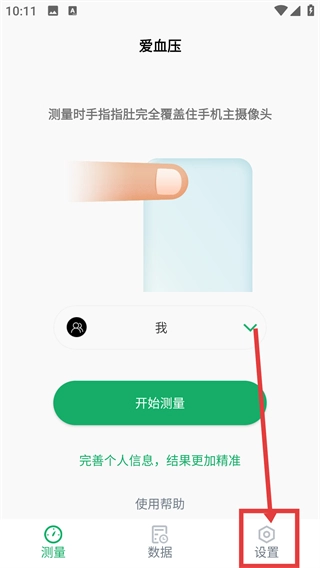 1在爱血压的测量页面,点击底部的【设置】选项,即可进入功能设置的操作界面。