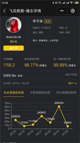 4、点击你想了解的账号,可以查看到账号数据详情,不仅有粉丝增量趋势图、点赞增量趋势图,还有账号详细的粉丝画像。