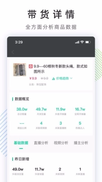 快速发现热门直播间,还原播主历史直播热度和销售数据,实现直播流量和电商变现。