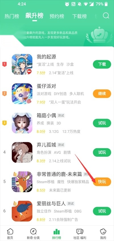 1、找到想要玩的游戏,点击右边的“快玩”按钮。