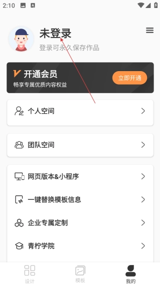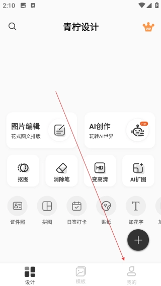 1、在设计页,点击底部【我的】选项,进入个人中心的功能界面。
