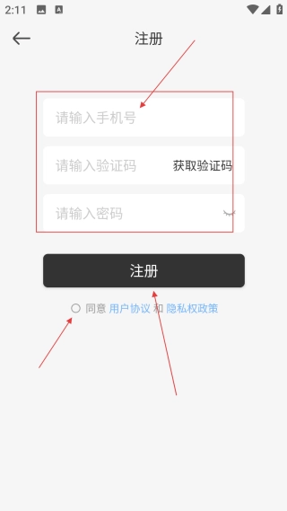 4、在注册页,填写【信息并勾选协议】,点击【注册】按钮,即可完成账号注册操作。