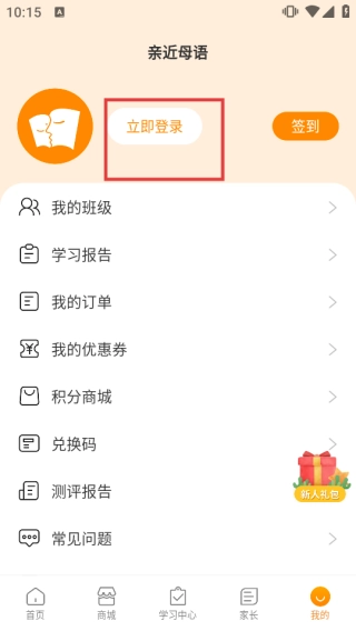 3、点击【我的】,再点击【立即登录】,进行账号登录,以便查看更多个性化学习报告、订单等信息。