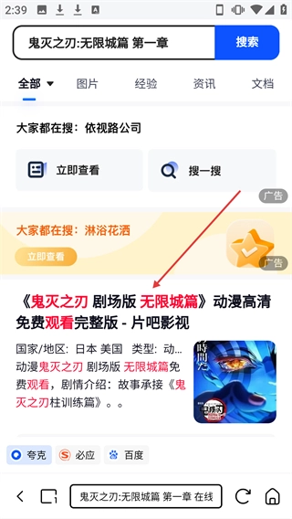2、在搜索结果页面点击【《鬼灭之刃剧场版无限城篇》...】对应的条目,就能进入该作品的播放页面。
