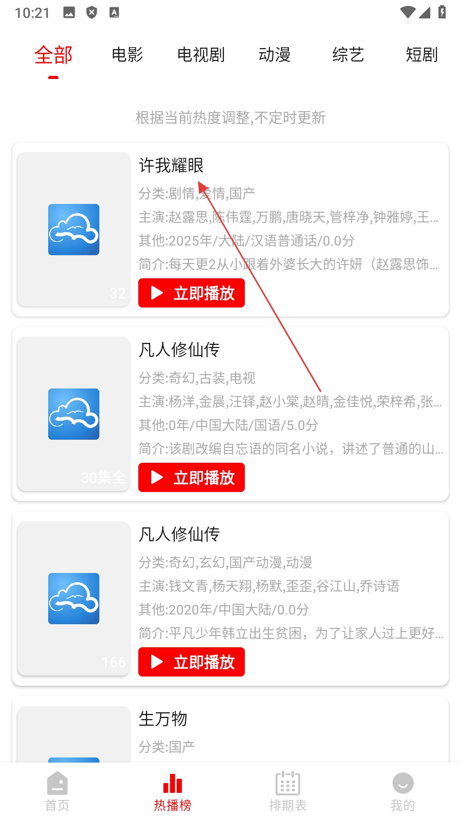 2、在热播榜页面,点击【目标影片】,进入影片播放页面。
