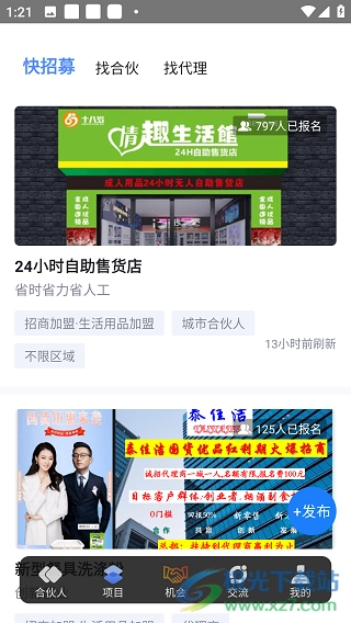 2、点击“项目”,可以通过快招募、找合伙、招代理找到符合自己的项目。
