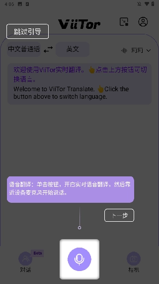 2、Viitor提供了一系列翻译功能,像无缝的实时语音翻译、对话翻译、相机翻译、实时转写以及屏幕悬浮字幕。