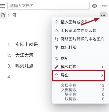 1、首先我们打开编辑页面,点击右上角的更多选项。在这里可以找到导出功能。