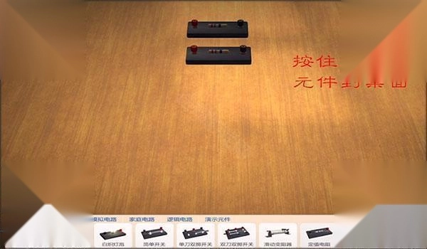 2、在下方工具栏中,可以选择自己需要的电学仪器,按住并拖动元件到桌面。