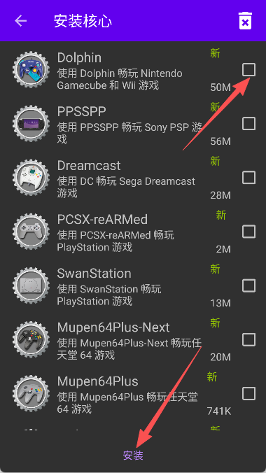 4、需要选择自己需要的核心,勾选上后点击“安装”按钮。